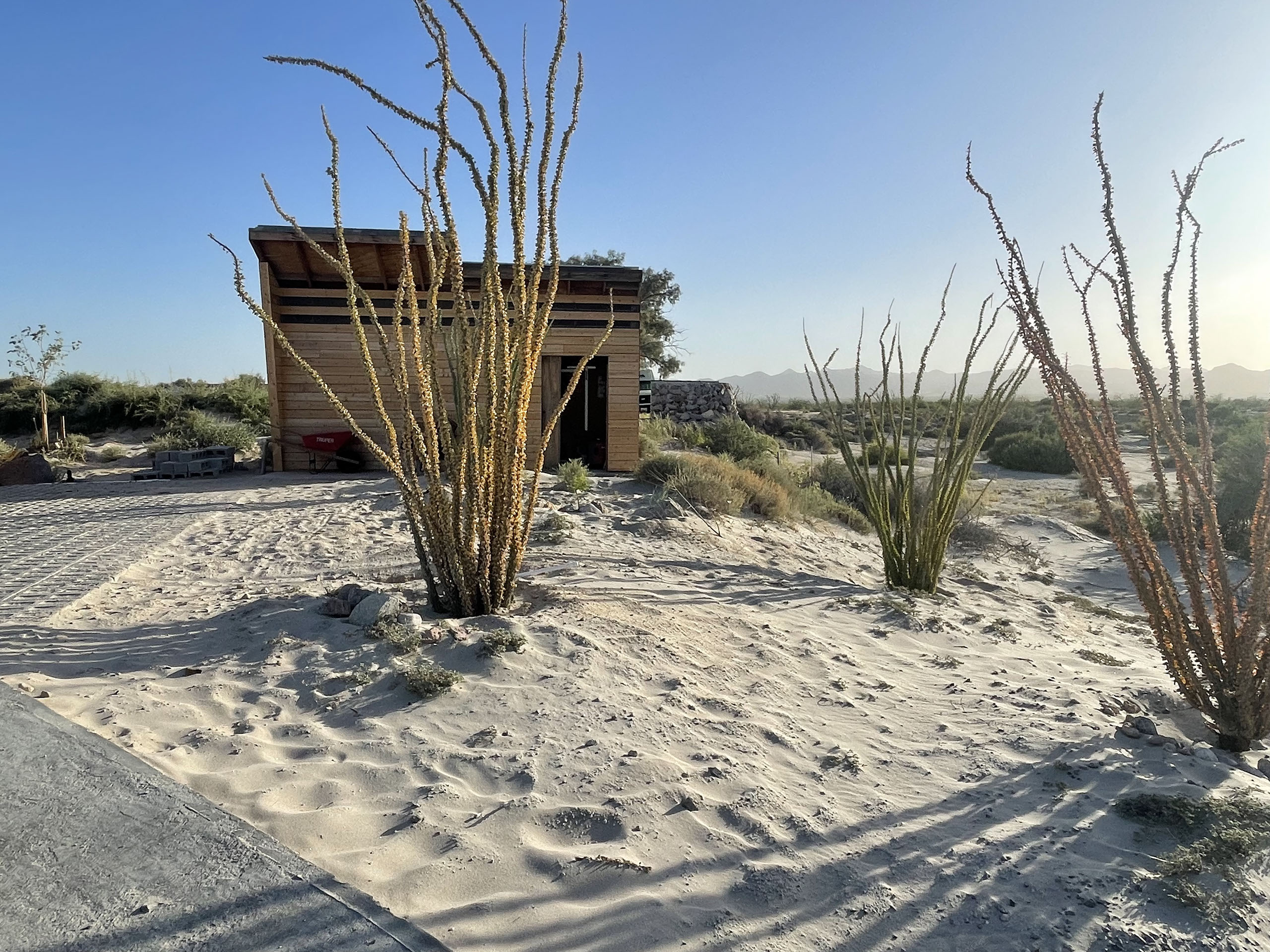 Sand in front of the Cube graded and ready for the cement block patio extension in 2022