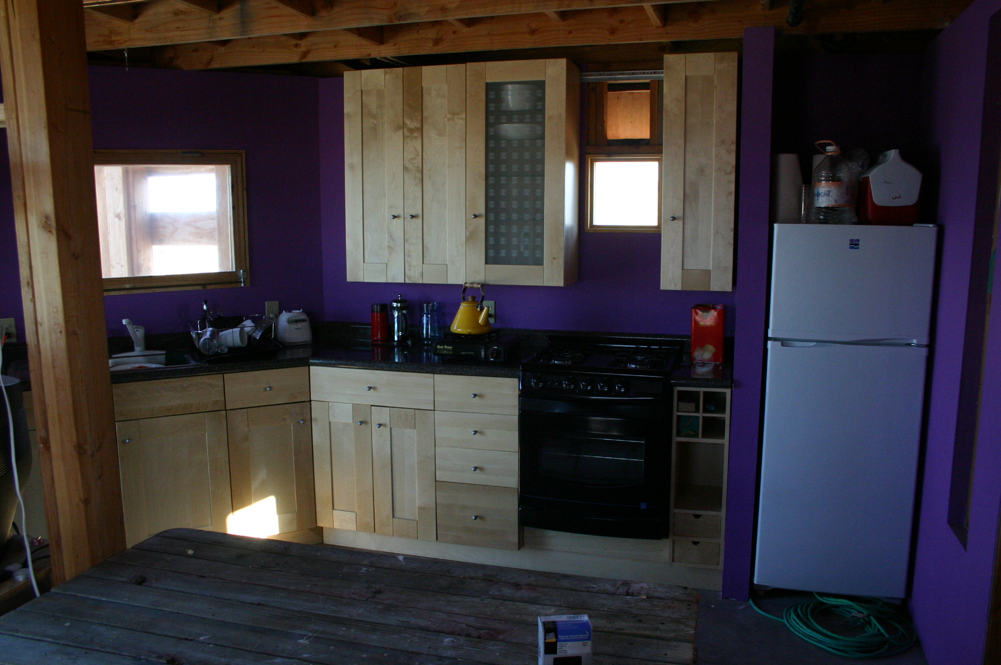 With the countertops installed, the kitchen is now in operation apart from the stove