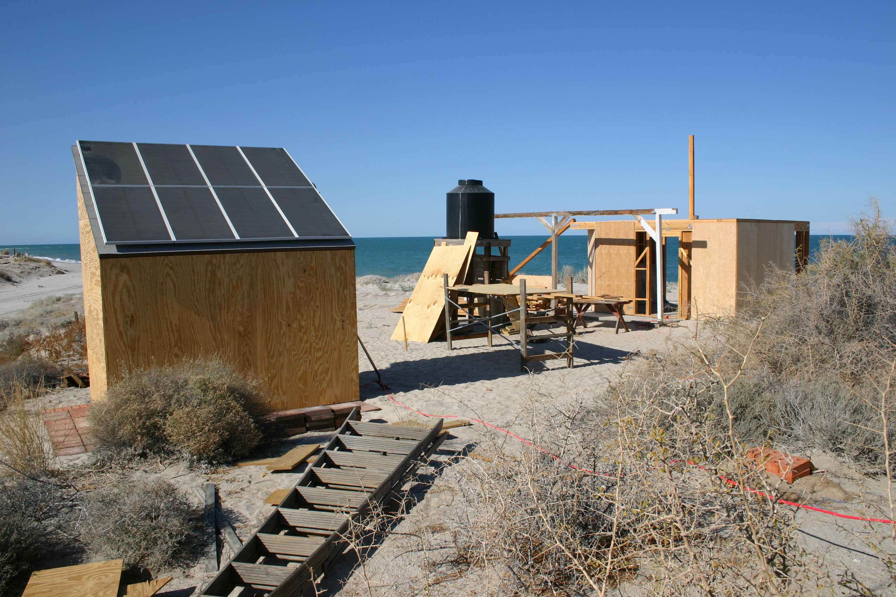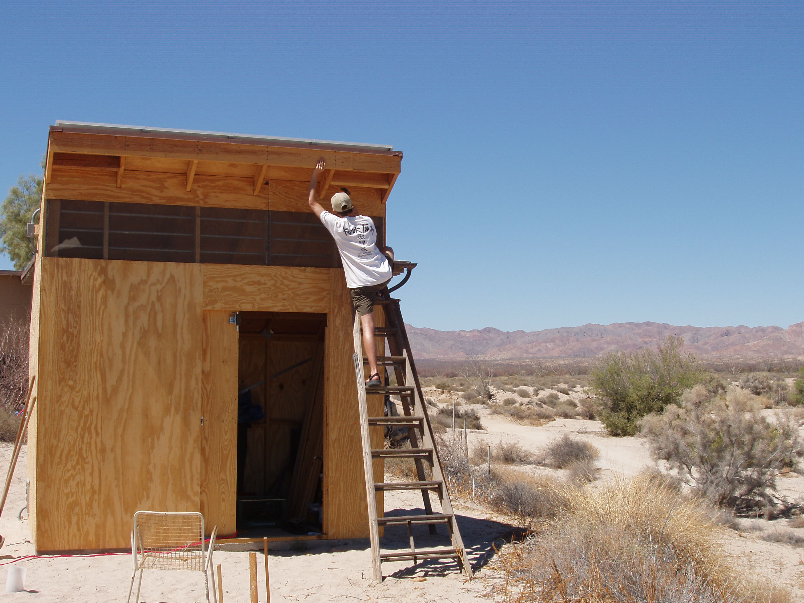The shed becomes the power source for the remaining construction