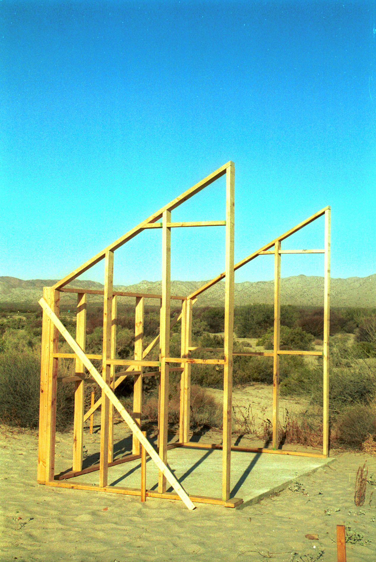 Framing the South wall. Temporary braces hold the structiure upright