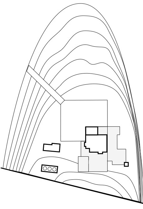 Firepit The shape of the firepit was determined by needing to be a cube—of course—and also needing to be made of cement blocks, in keeping with the aesthetic of building's surroundings. Lighting a fire inside a stack of cement blocks will cause them the fracture, so the inside of the firepit had to be lined with special heat-resistant bricks. The firepit also had to be far enough away fro the edge of the cliff so as not to topple onto the beach, and far enough away from the wood-clad Cube not to set fire to it.