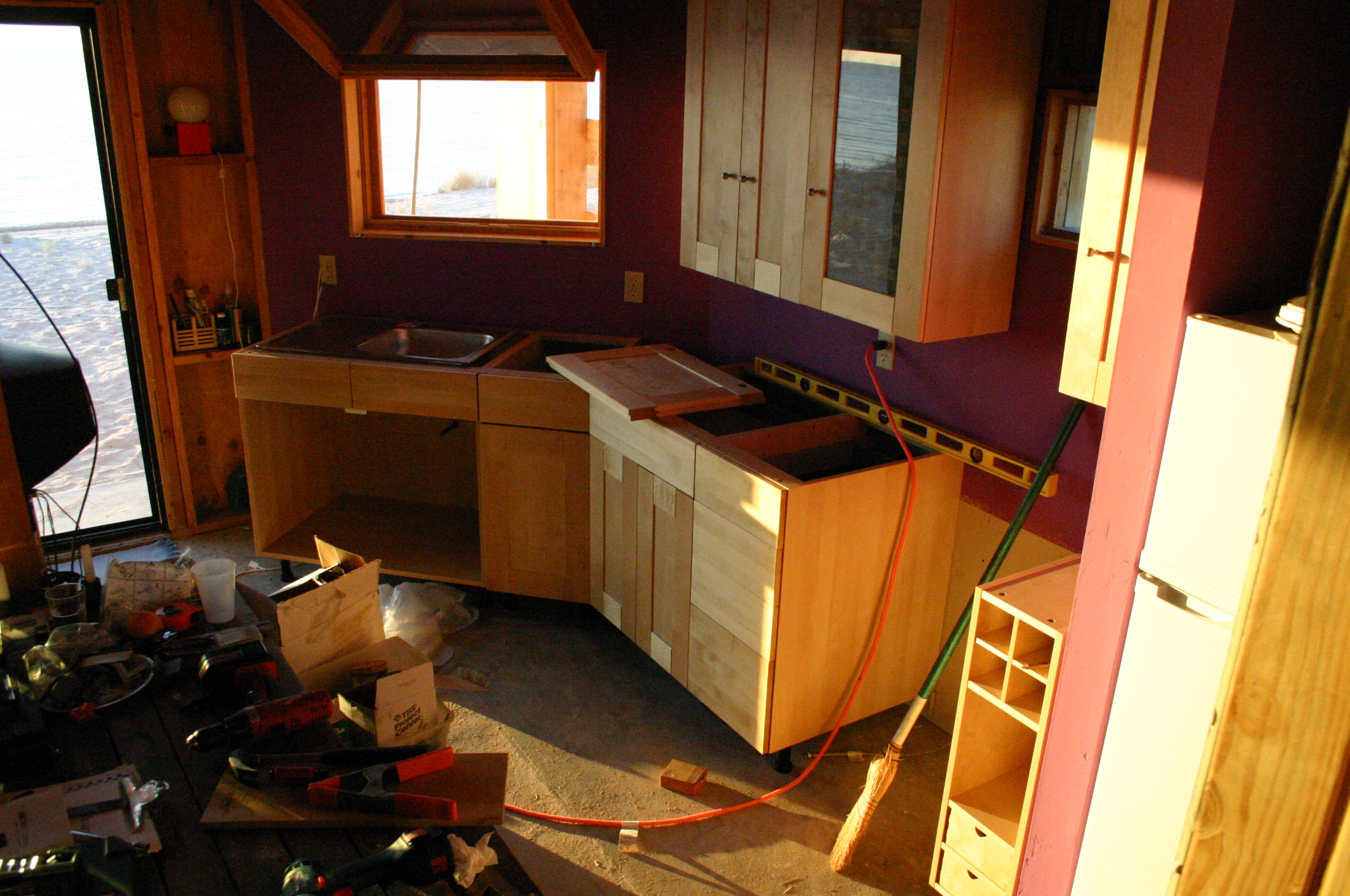 All cabinets are now in place. The sink cabinet will get its doors after the tap is installed