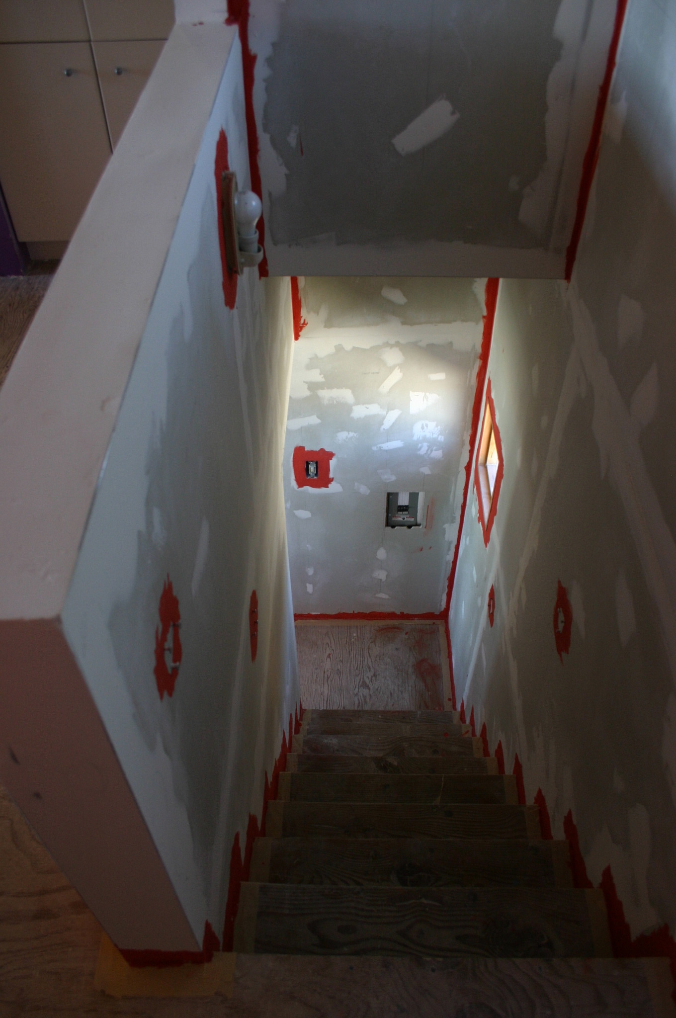 The stairwell is plastered and all inside edges painted with a brush