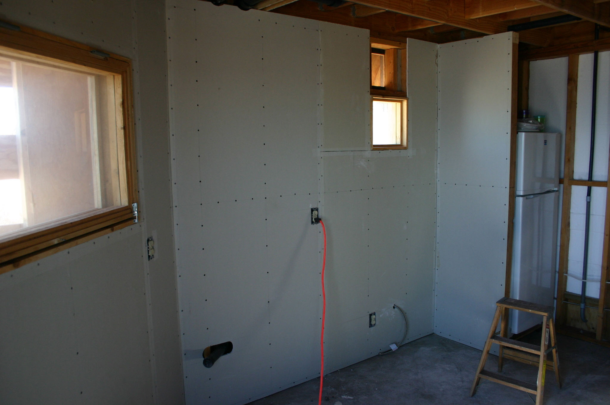 Drywall in the kitchen area now complete