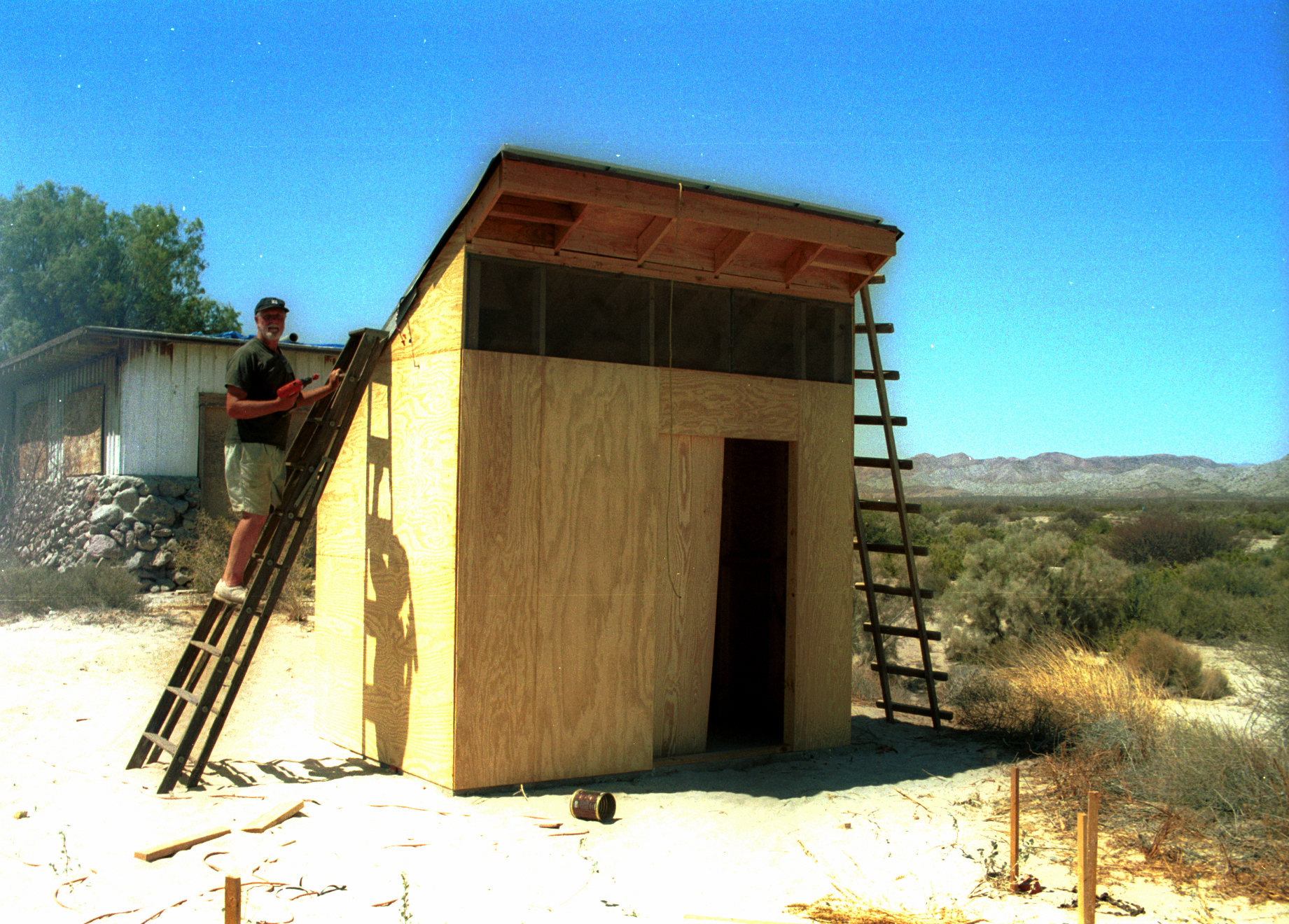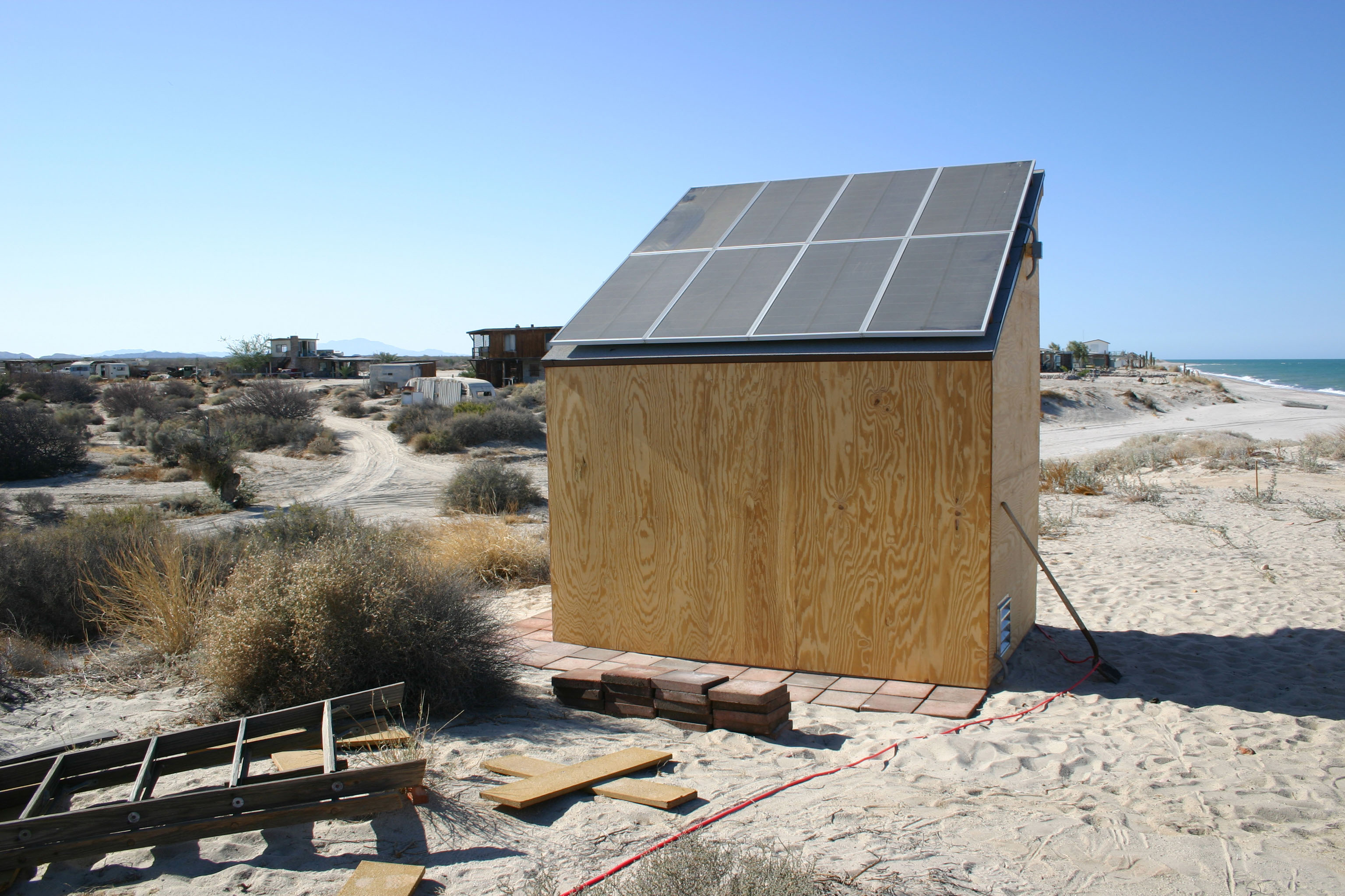 The shed becomes the power source for the remaining construction